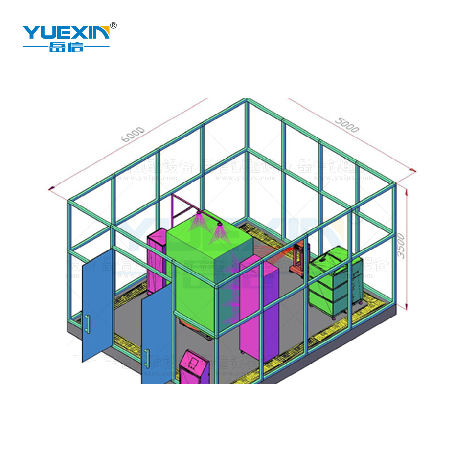 岳信供應的IP淋雨試驗房方案,有箱式淋雨試驗,開放式噴淋試驗房,整體淋雨試驗房,可根據客戶產品使用場景定制防水試驗房、防水試驗臺。與36個行業,超過2852家企業家共同見證,研發出10000+套防水試驗解決方案。
